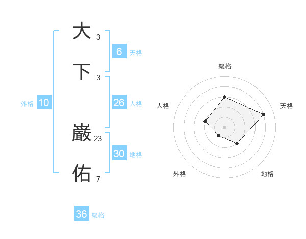 大下 巌佑さんの総格は36画の3点!