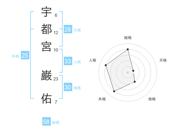宇都宮 巌佑さんを姓名の画数から五運を鑑定