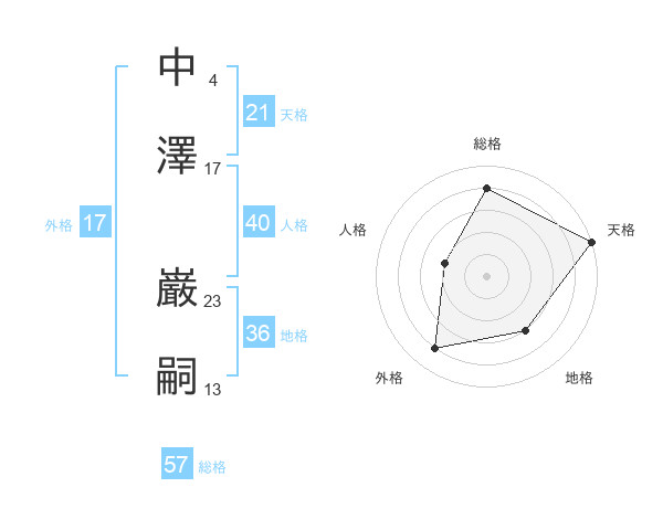 中澤 巌嗣さんの総格は57画の4点!