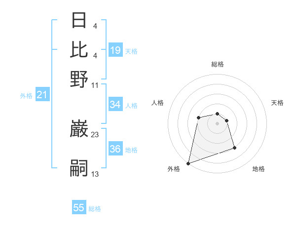 日比野 巌嗣さんの外格は21画の5点!