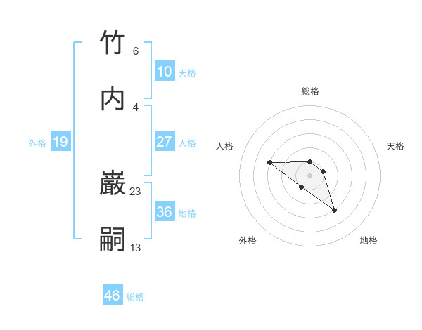 竹内 巌嗣さんを姓名の画数から五運を鑑定