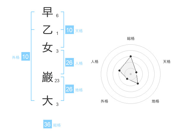 早乙女 巌大さんを姓名の画数から五運を鑑定
