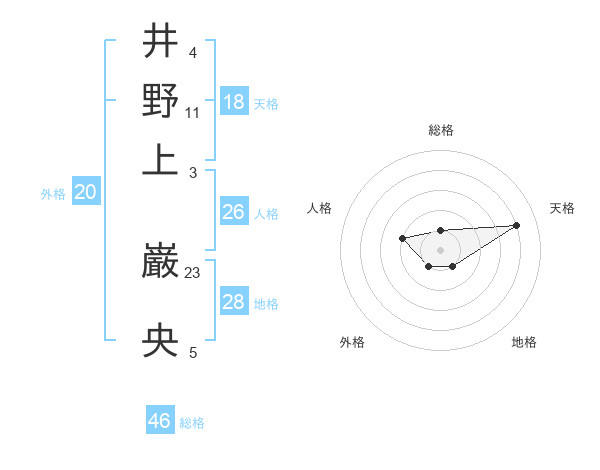 井野上 巌央さんを姓名の画数から五運を鑑定