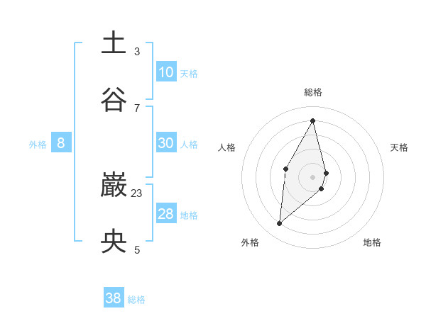 土谷 巌央さんを姓名の画数から五運を鑑定
