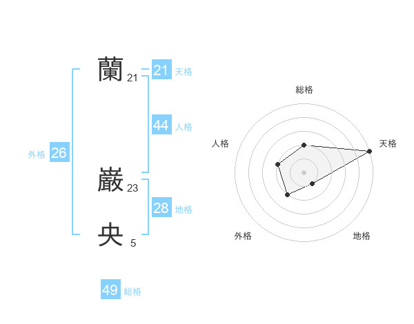 蘭 巌央さんの天格は21画の5点!
