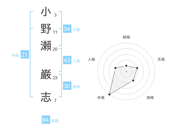 小野瀬 巌志さんを姓名の画数から五運を鑑定