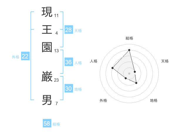 現王園 巌男さんを姓名の画数から五運を鑑定