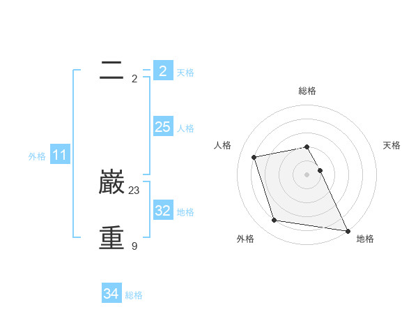 二 巌重さんの地格は32画の5点!