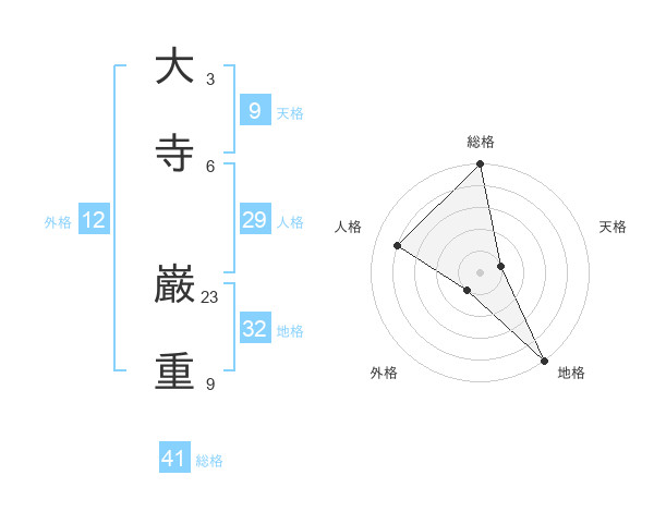 大寺 巌重さんの総格は41画の5点!