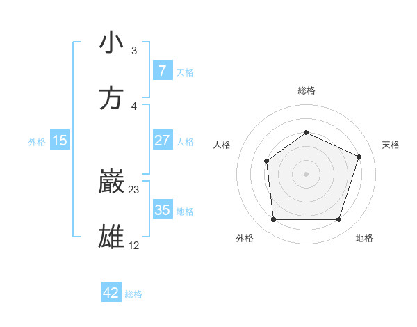 小方 巌雄さんを姓名の画数から五運を鑑定