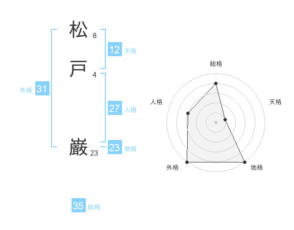 松戸 巌さんの総格は35画の4点!