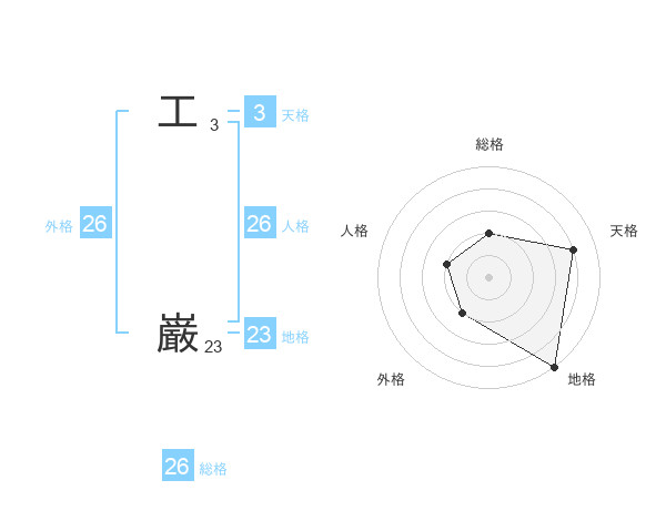 工 巌さんの総格は26画の2点!