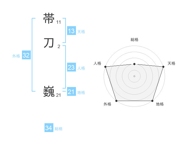 帯刀 巍さんの外格は32画の5点!