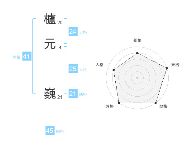 櫨元 巍さんを姓名の画数から五運を鑑定
