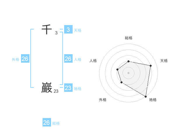 千 巖さんの外格は26画の2点!