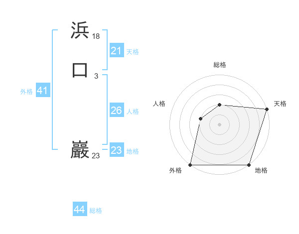 浜口 巖さんの総格は44画の2点!