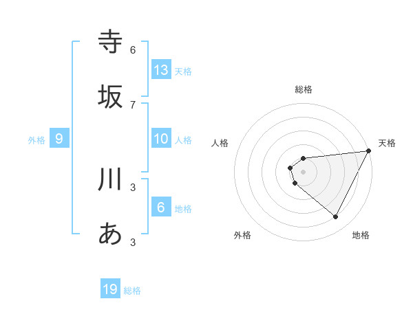 寺坂 川あさんを姓名の画数から五運を鑑定