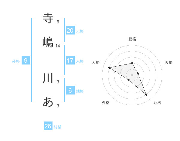 寺嶋 川あさんを姓名の画数から五運を鑑定