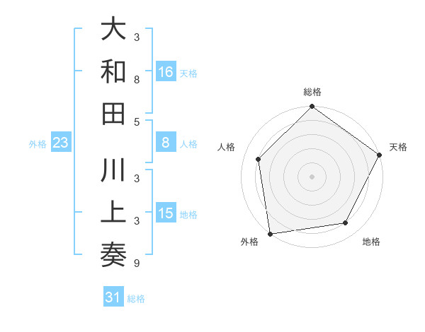 大和田 川上奏さんの総格は31画の5点!
