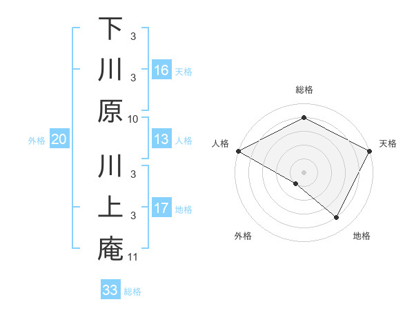 下川原 川上庵さんの人格は13画の5点!
