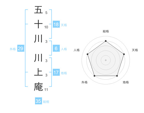 五十川 川上庵さんを姓名の画数から五運を鑑定
