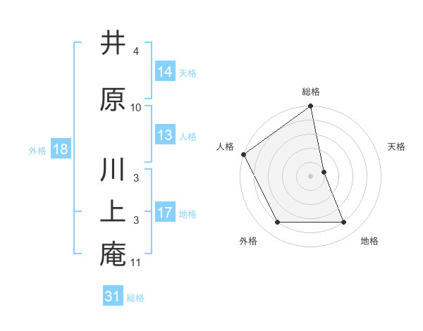 井原 川上庵さんの人格は13画の5点!