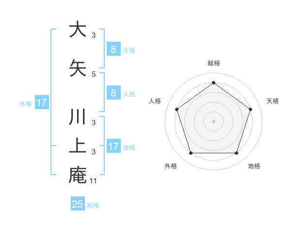 大矢 川上庵さんを姓名の画数から五運を鑑定