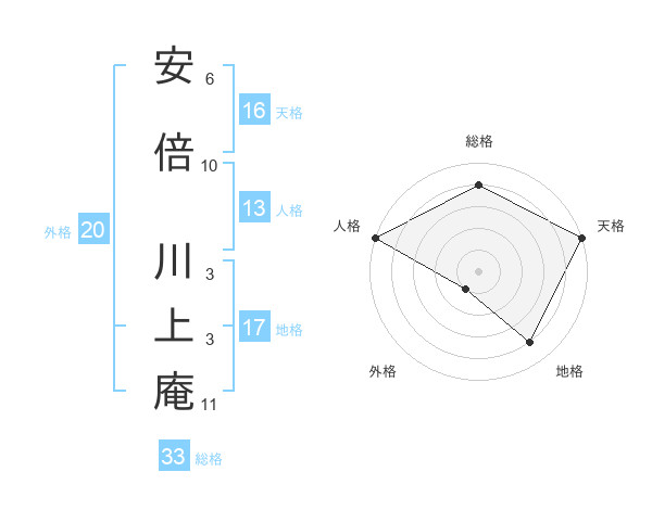 安倍 川上庵さんの総格は33画の4点!