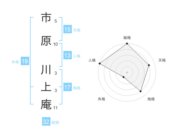 市原 川上庵さんの人格は13画の5点!