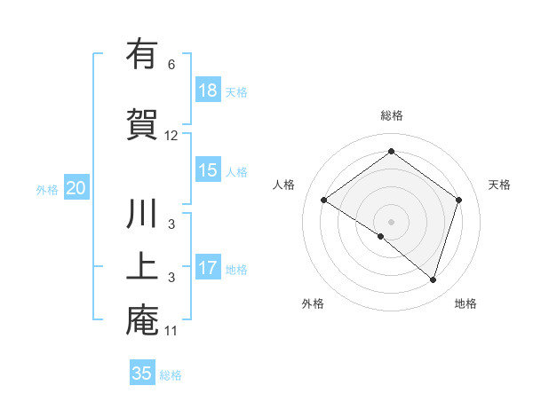 有賀 川上庵さんを姓名の画数から五運を鑑定