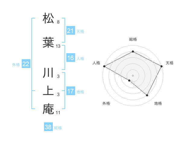 松葉 川上庵さんを姓名の画数から五運を鑑定