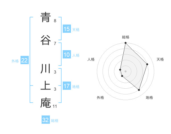 青谷 川上庵さんを姓名の画数から五運を鑑定