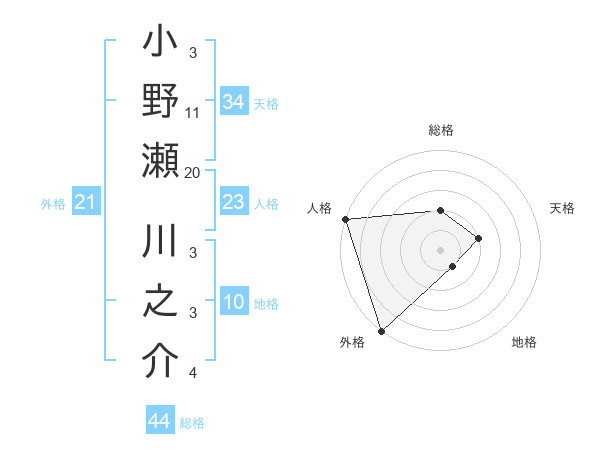 小野瀬 川之介さんを姓名の画数から五運を鑑定