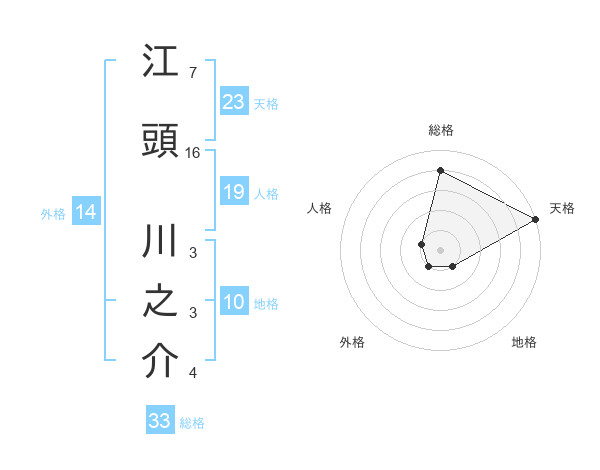 江頭 川之介さんを姓名の画数から五運を鑑定