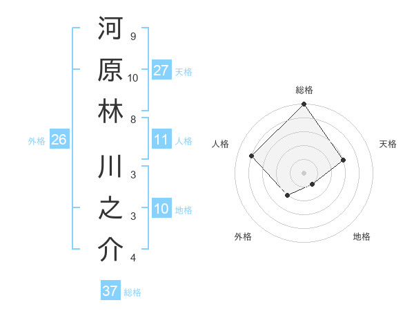 河原林 川之介さんを姓名の画数から五運を鑑定
