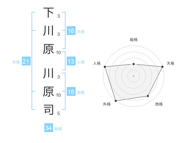 下川原 川原司さんを姓名の画数から五運を鑑定