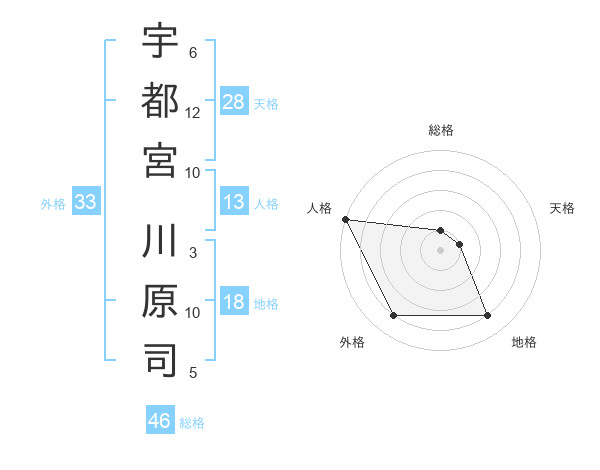 宇都宮 川原司さんを姓名の画数から五運を鑑定