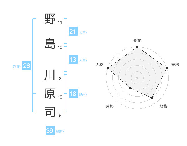 野島 川原司さんの総格は39画の5点!