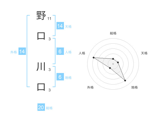 野口 川口さんの外格は14画の1点!