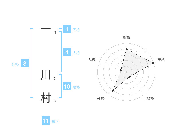 一 川村さんの総格は11画の4点!
