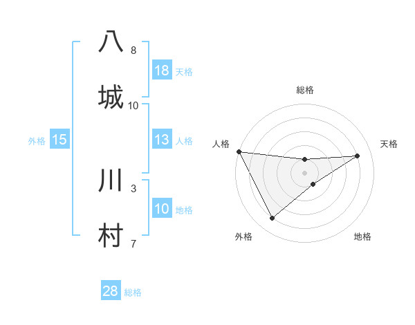 八城 川村さんの総格は28画の1点!