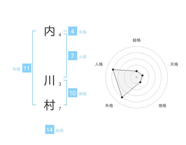 内 川村さんの総格は14画の1点!