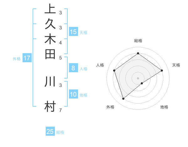 上久木田 川村さんを姓名の画数から五運を鑑定