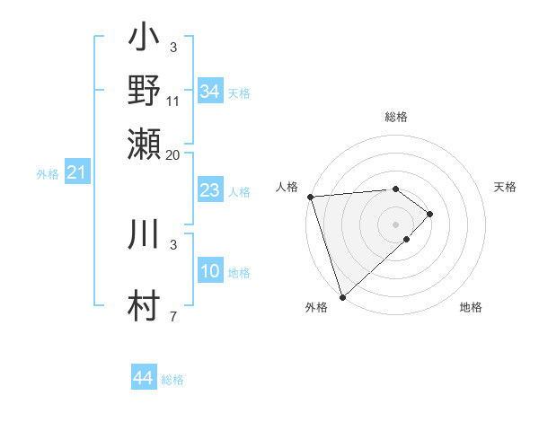 小野瀬 川村さんを姓名の画数から五運を鑑定
