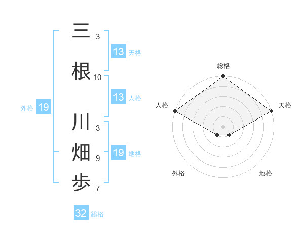 三根 川畑歩さんを姓名の画数から五運を鑑定