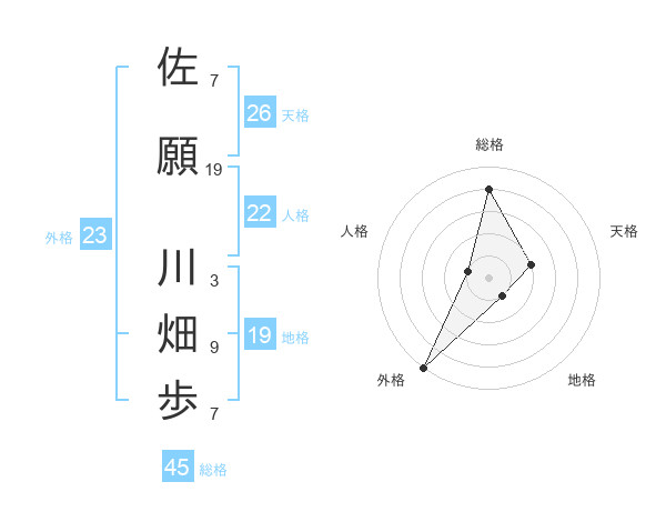 佐願 川畑歩さんを姓名の画数から五運を鑑定