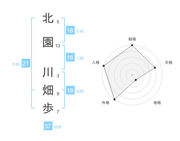 北園 川畑歩さんを姓名の画数から五運を鑑定