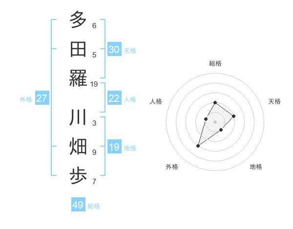 多田羅 川畑歩さんの地格は19画の1点!