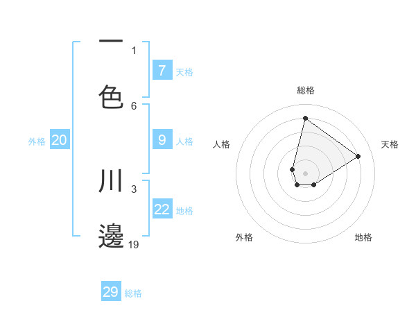 一色 川邊さんの総格は29画の4点!