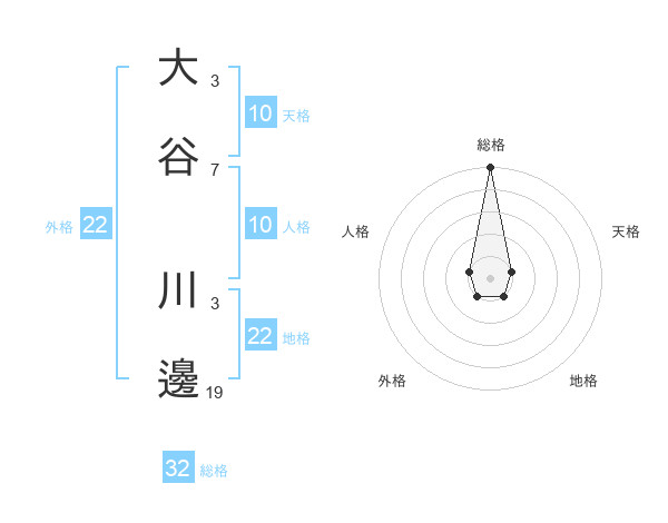大谷 川邊さんを姓名の画数から五運を鑑定